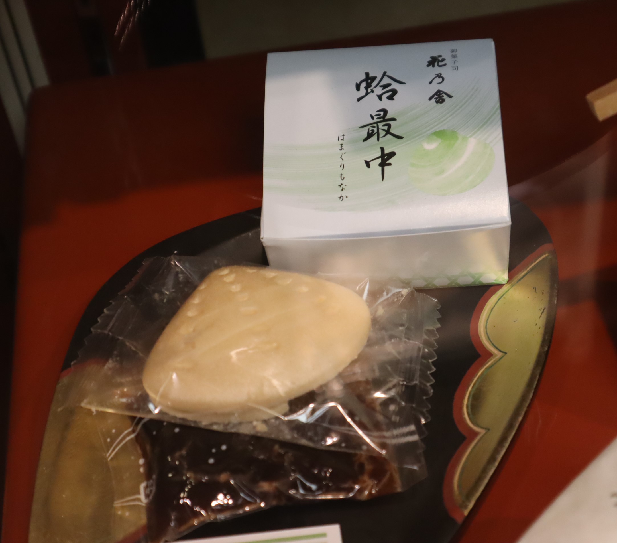 除了店內享用的和菓子之外,「花乃舍」還有幾款桑名特有的伴手禮,比如說「蛤最中」與「蛤汁粉」。「最中」指的是以糯米皮包紅豆餡的日式點心,因為桑名名產是文蛤,因此這裡的「最中」餅皮是文蛤造型。「汁粉」則是日文裡紅豆湯的意思,「蛤汁粉」將紅豆泥包裹在文蛤狀的外殼裡,以熱開水沖泡之後就成了一碗熱騰騰的即時紅豆湯。這兩樣饒富趣味又可口的桑名點心絕對是不可錯過的伴手禮。