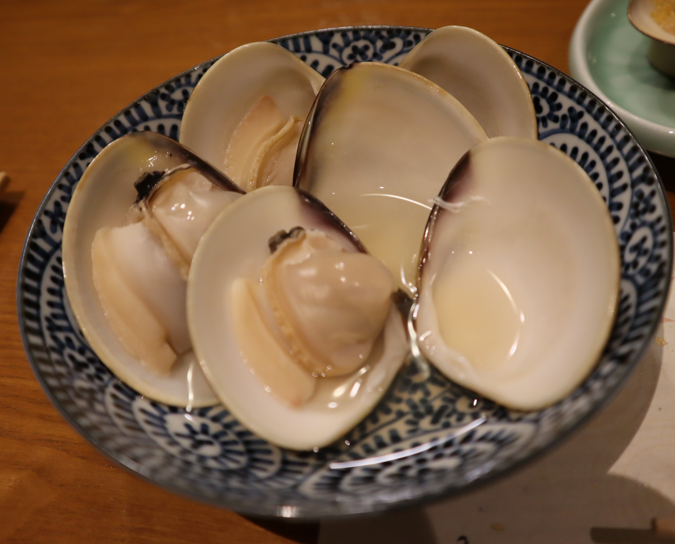在「日出」除了以昆布柴魚為湯底川燙的涮文蛤之外,還有乾燒文蛤以及文蛤天婦羅等料理。不加任何調味料的涮文蛤,一入口滿滿的香甜滋味在嘴裡散開,美味程度令人驚艷。