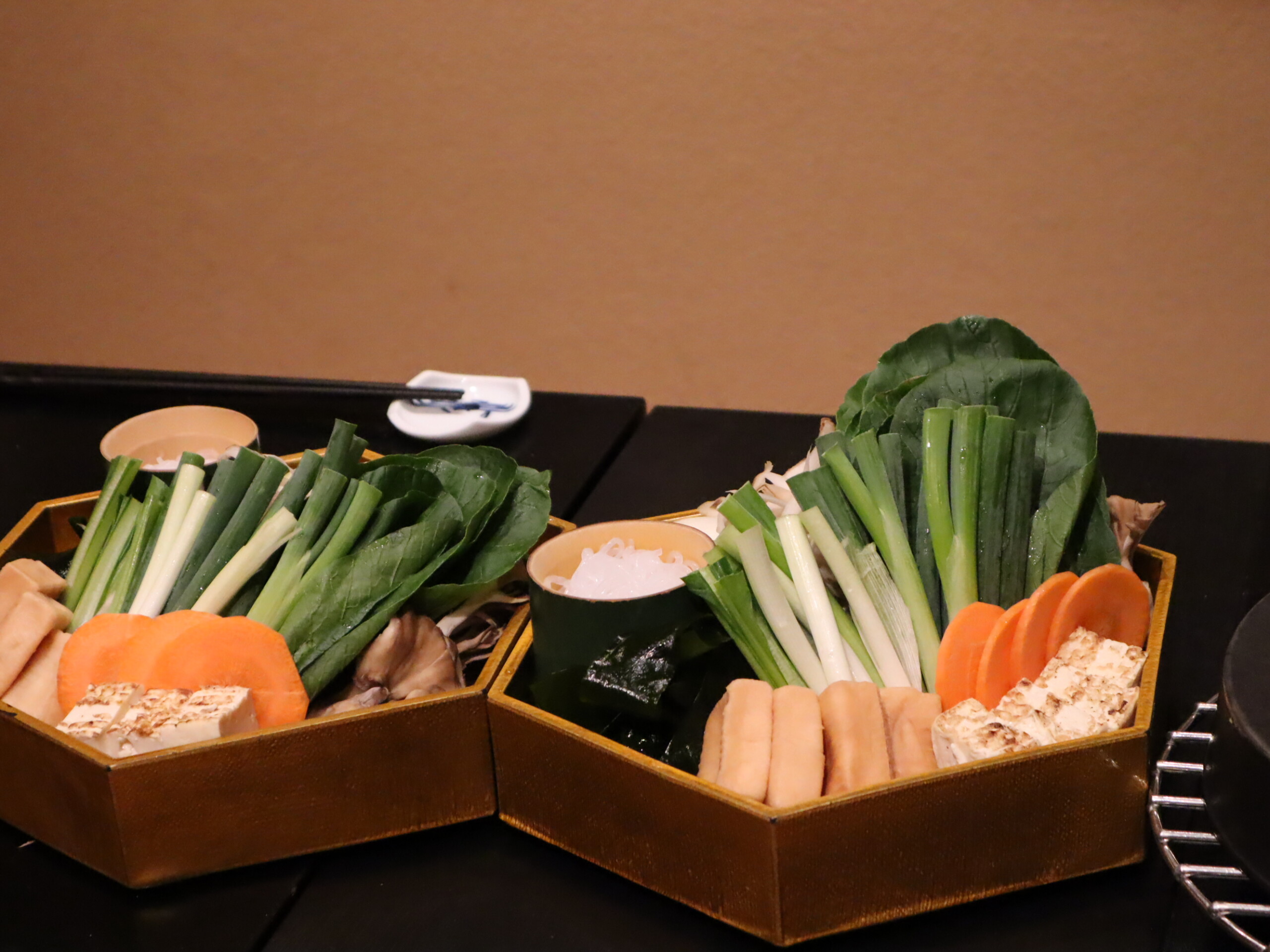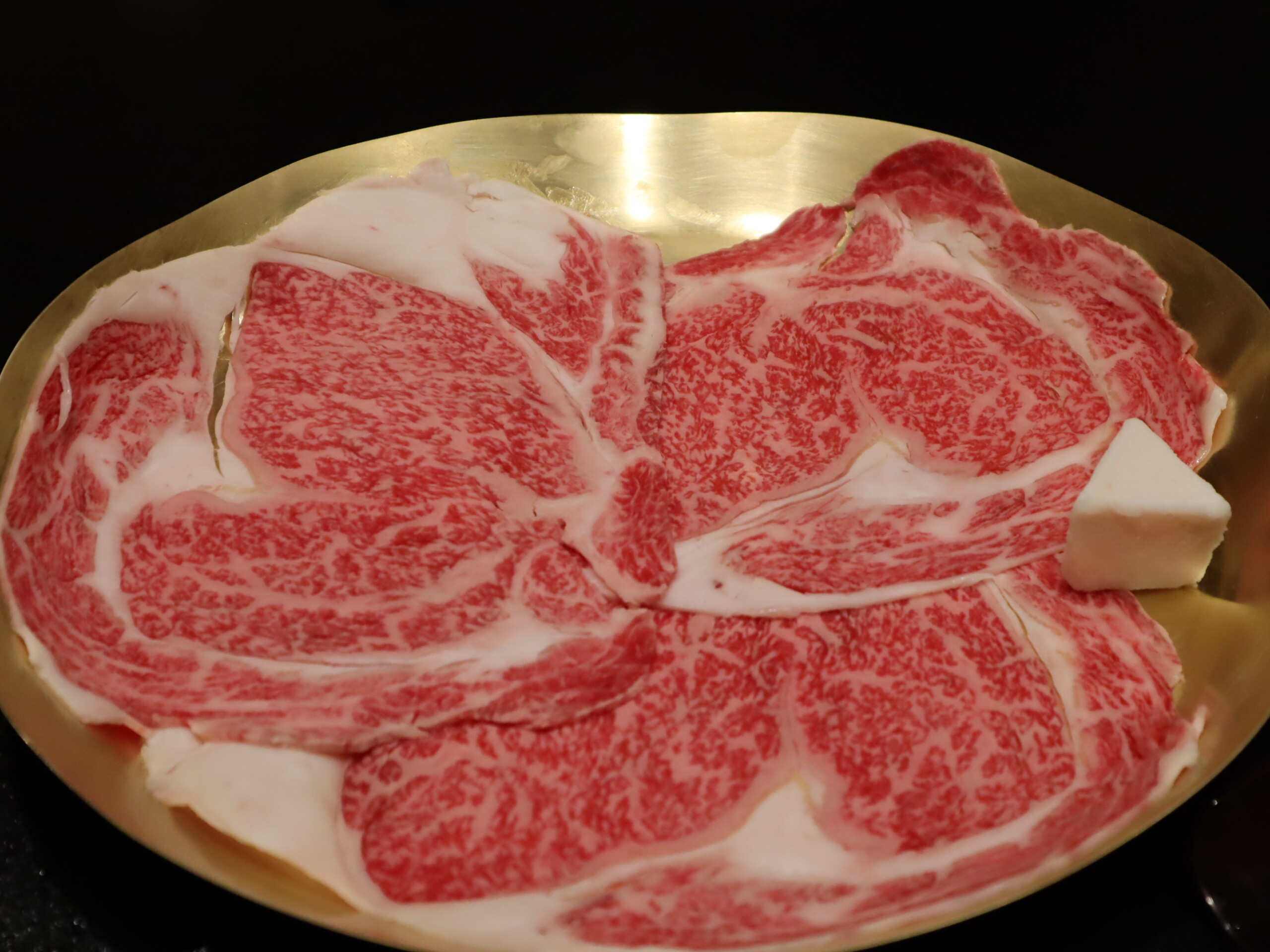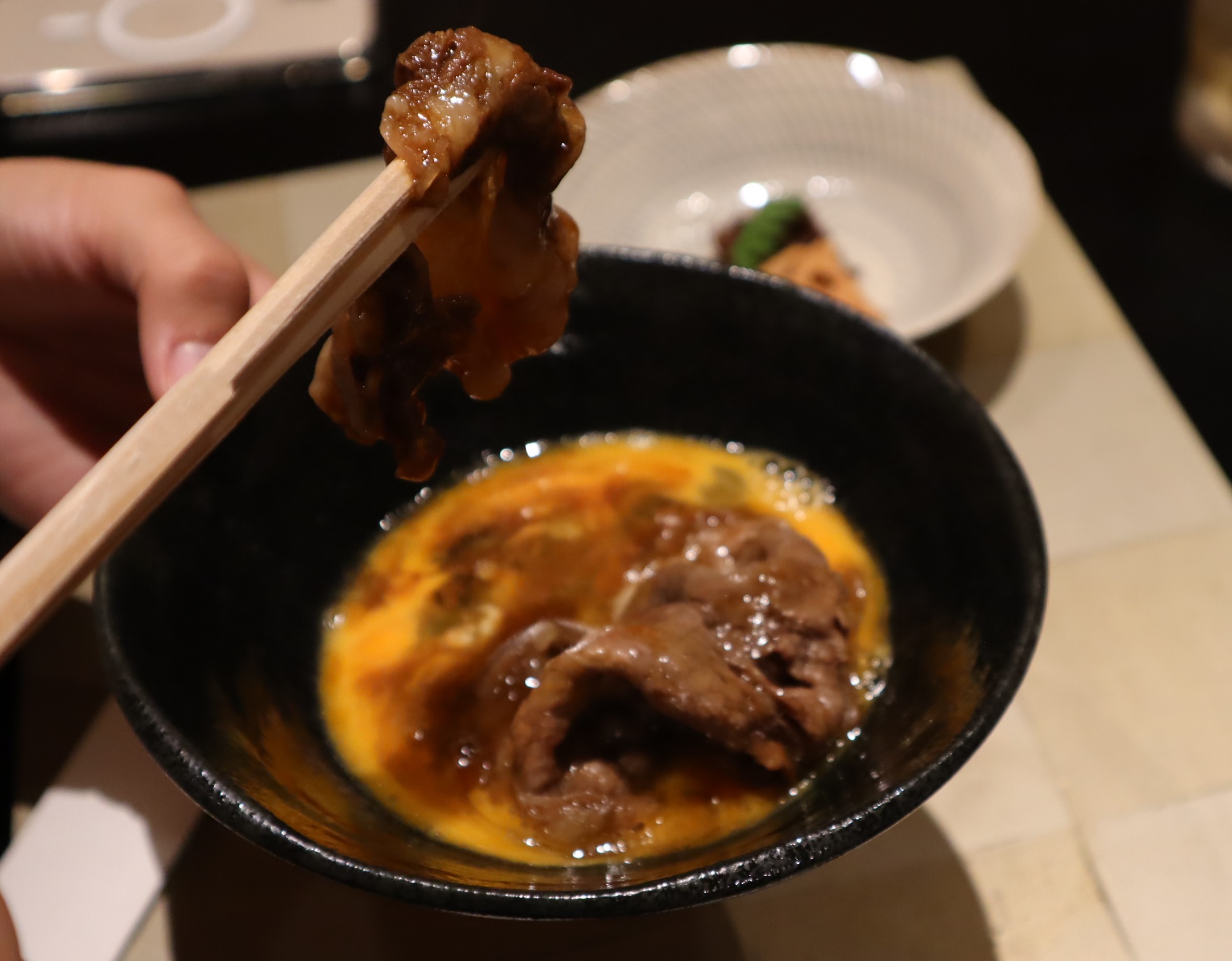 這裡的壽喜燒所使用的牛肉大概可分為黑毛和牛、柿安牛或是松阪牛三類。其中的柿安牛是相當於A5等級的自家品牌。而決定壽喜燒美味與否的關鍵食材雞蛋則是採用來自宮崎縣溫和香醇的「天孫降卵」。再搭配精心挑選的新鮮蔬菜,由專業的服務人員在客人面前烹調,色香味俱全讓人未上菜就已充滿期待。