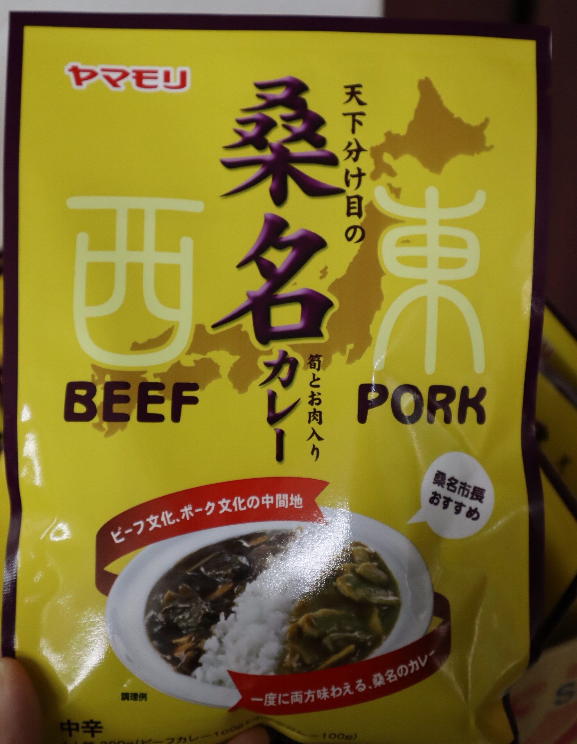 在「くわなまちの駅」裡筆者還發現了一樣絕桑名僅有的特產,那就是桑名咖哩。據說提到咖哩飯裡的肉類,關東人加豬肉,而關西人加牛肉,所以位於中間位置的桑名就發明出了半豬半牛的桑名咖哩。這麼有趣的伴手禮怎能錯過。