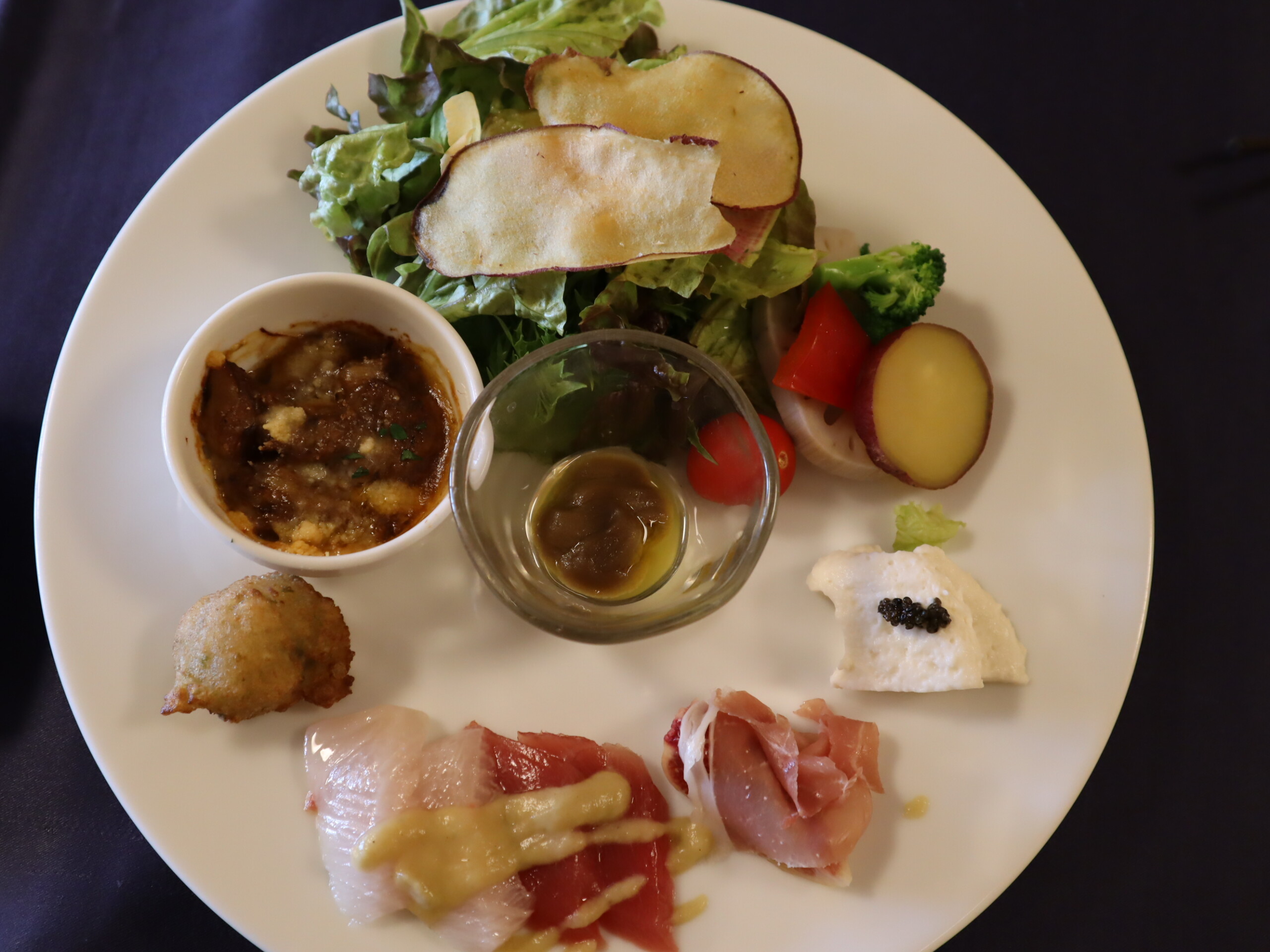 「船津屋」的基本款午餐套餐共四道菜,分別是前菜拼盤、湯品、義大利麵或是主菜擇一及甜點。每一道都是使用當地當季食材所烹調,嚐到的是廚師的用心與老店的好品味。