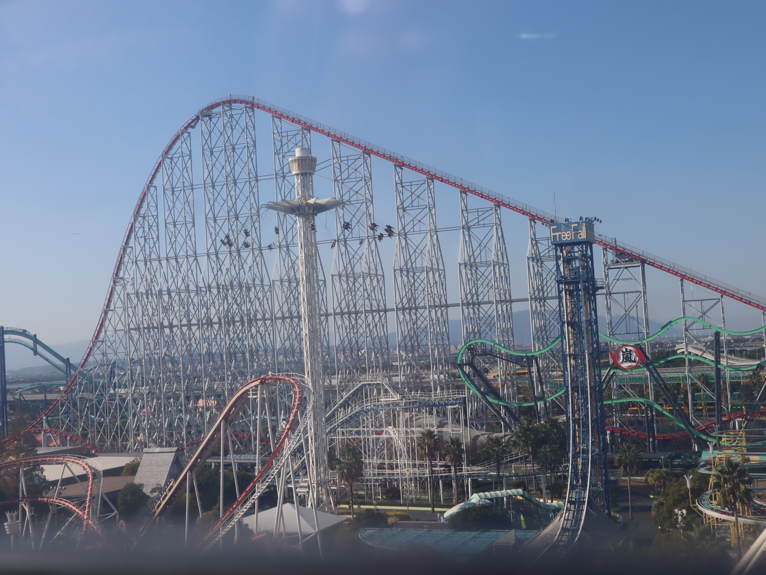 「鐵龍2000」全長2490公尺,截至發稿為止是世界第一長的雲霄飛車。不只長度破紀錄,最高點距離地表97公尺,甚至高於摩天輪。雖然說雙腳懸空有如搭乘在龍背上飛翔是這款雲霄飛車的特徵,但是中途太刺激已害怕得想下車卻動彈不得!這種刺激與煎熬並存或許就是「鐵龍2000」的魅力所在。