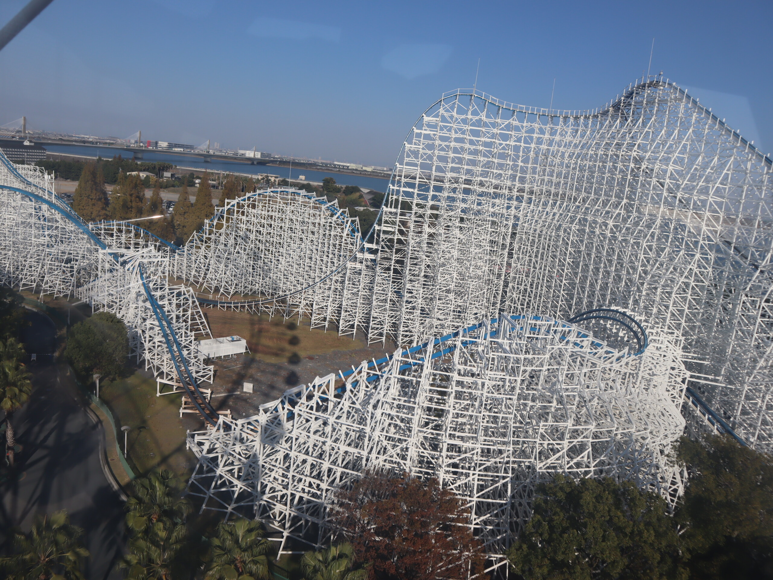 除了「鐵龍2000」,雲霄飛車迷不會錯過的就是「白鯨」。別看「白鯨」藍白色調像是優游大海的鯨魚般優雅,這可是日本第一座以木材結合鋼材完成的雲霄飛車。「白鯨」的長度雖然不如「鐵龍2000」,但是軌道設計複雜,木支架更顯得晃動,速度更快,彷彿在波濤洶湧的大浪小浪之間穿梭,加上中途車廂會翻轉上下顛倒,保證搭過之後終生難忘。