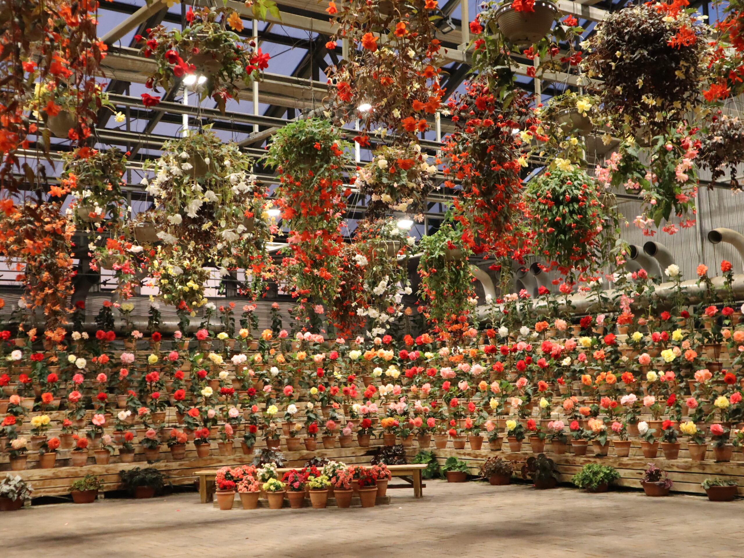 「名花之里」除了戶外花田之外還有4棟大型溫室。以秋海棠為主,栽培了來自世界各地數百種共約12000株花卉的溫室取名為「秋海棠花園」。色澤鮮豔的秋海棠搭配其他植物,以垂吊或壁掛等各種方式展示,打造出宛如油畫般的世界。漫步其中,每個角落都是取景好點,是一處讓人相機快門按不停的夢幻天地。