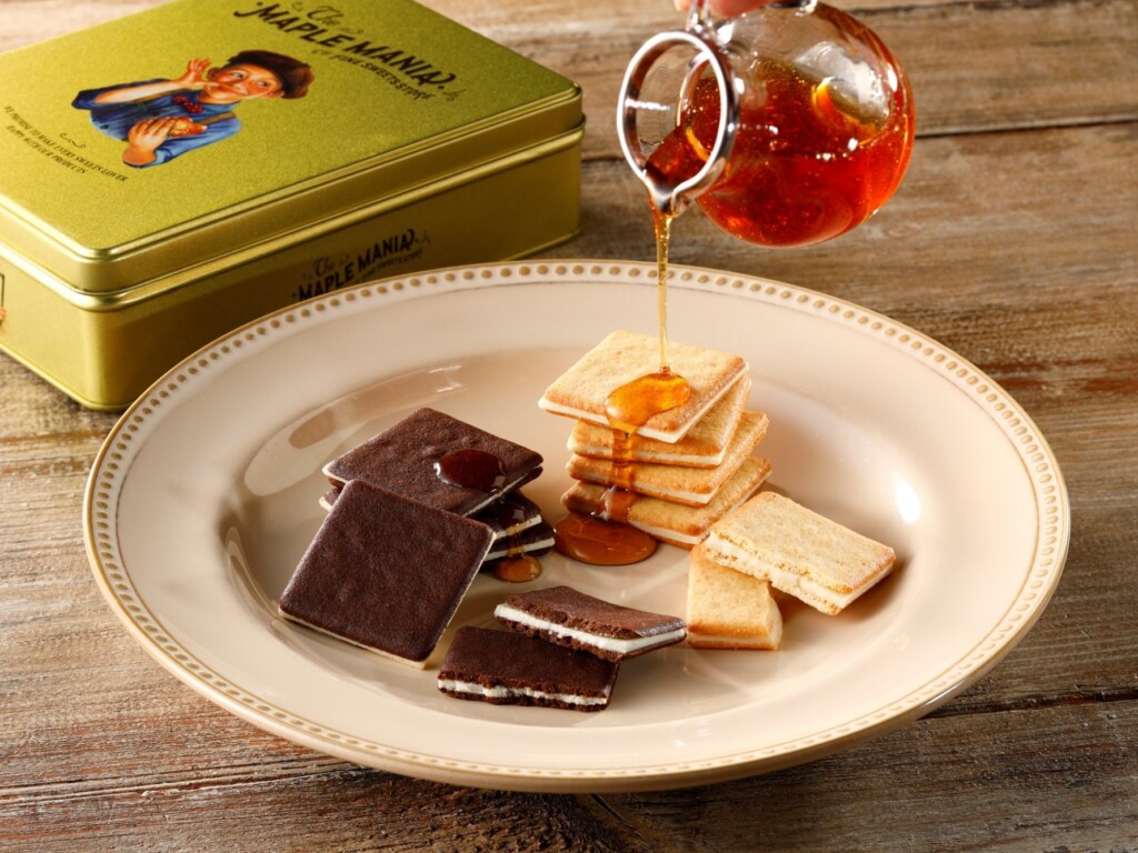 這是限量版罐裝,內含GRANSTA東京限定商品「楓糖巧克力餅乾」和經典人氣款「楓糖奶油餅乾」,裝在高貴的金色罐中,非常適合當伴手禮。