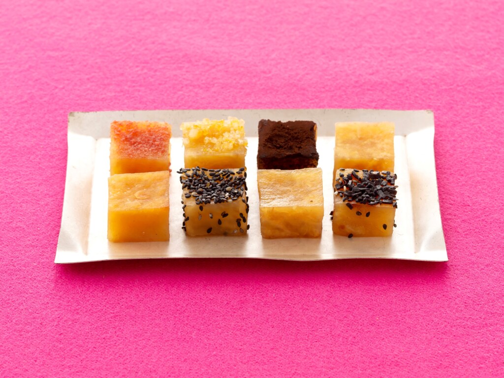 將蒸煮過的鳴門金時浸泡在特製蜜漬中乾燥製成的點心,一口大小,輕盈的口感和樸實的味道讓人愉悅。包括了全12種中的8種品種,和三盆、塩昆布、珈琲、塩、柚子、胡麻、梅、炙。