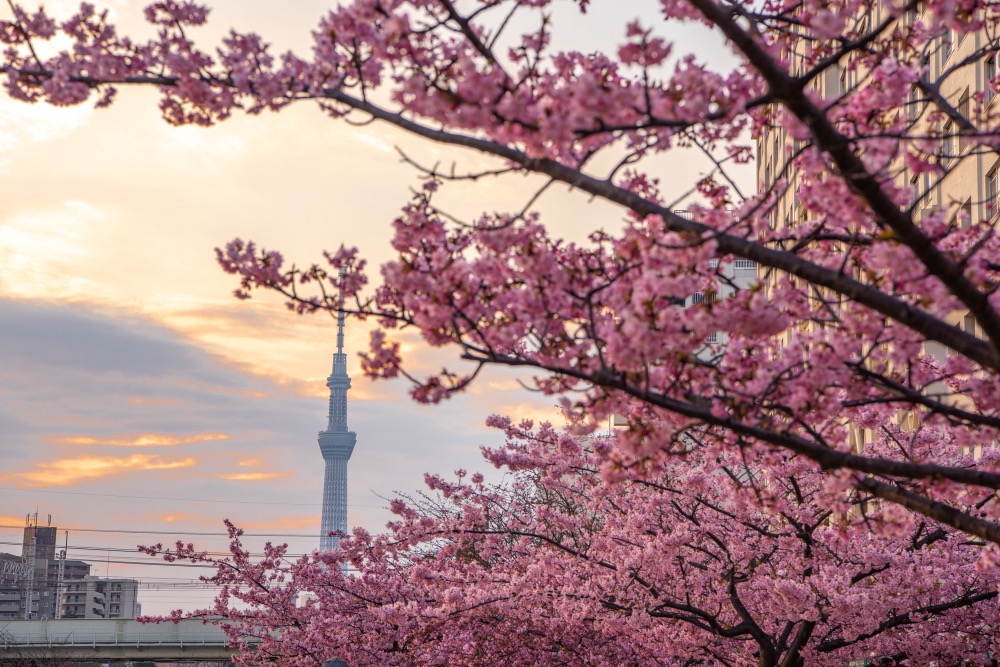 來東京,不可錯過的浪漫景點之一,就是位於「東京晴空塔(東京スカイツリー)」附近的「東武橋」,橫跨於清流旁,是賞河津櫻的絕佳地點。每年2月下旬至3月上旬,這座橋附近綻放著早開的河津櫻,與壯觀的晴空塔共同演繹自然和現代融合的絕景。