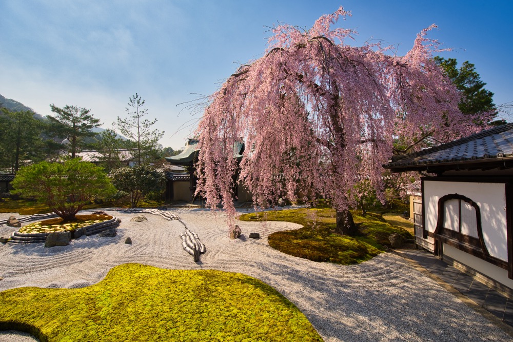 「高台寺」以著名的蒔繪工藝聞名,是由豐臣秀吉的正室北政所(又稱寧寧),為了紀念亡夫而興建。自江戶時代以來,一直以其美麗的花景聞名,不僅在秋季展現紅葉之美,同時也是賞櫻的絕佳勝地。