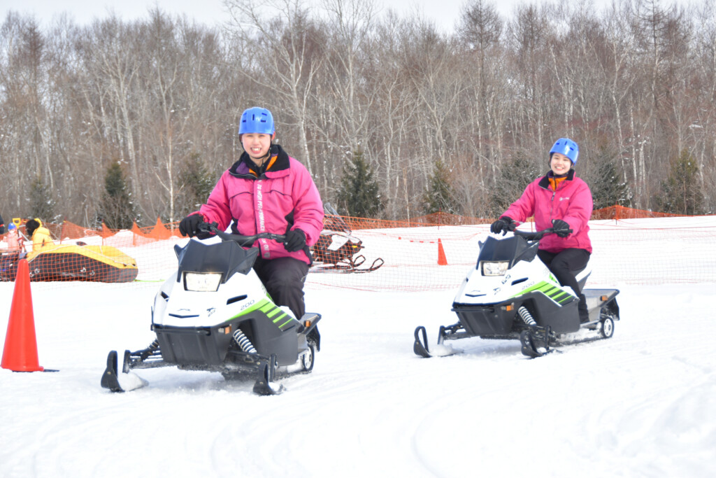 在雪地上疾馳的迷你雪地摩托車。您可以親自駕駛,體驗像雪上卡丁車的刺激。適合小學生以上的孩子體驗,是全家人都能享受的活動。