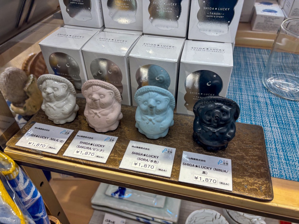 說到滋賀的名產,一定要提到的就是有著悠久傳統歷史的信樂燒。信樂燒的製品相當多元,不論是水缸、茶具、酒壺到餐具都有。其中「狸貓」擺設最為知名,可說是信樂燒的代表。在COCO滋賀門口就可以看到一大一小的信樂狸貓,相當可愛討喜。