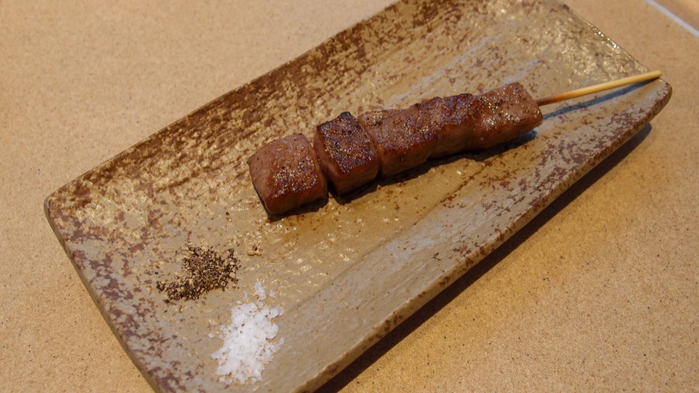 當然近江牛肉串也是下酒菜的好選擇之一,來到SHIGA BAR不需要花大錢就能夠品嚐傳說中的美味,搭配美酒恰到好處,但一塊一口的份量,卻也讓人有點意猶未盡,忍不住想要一串接著一串。