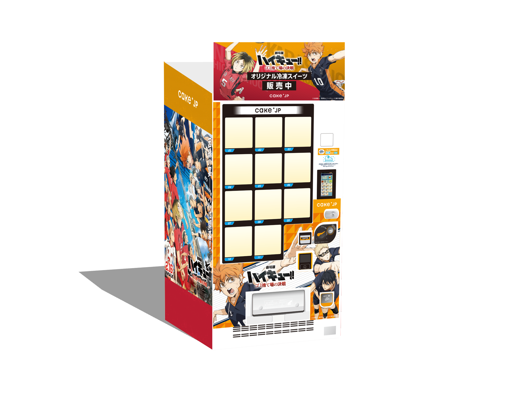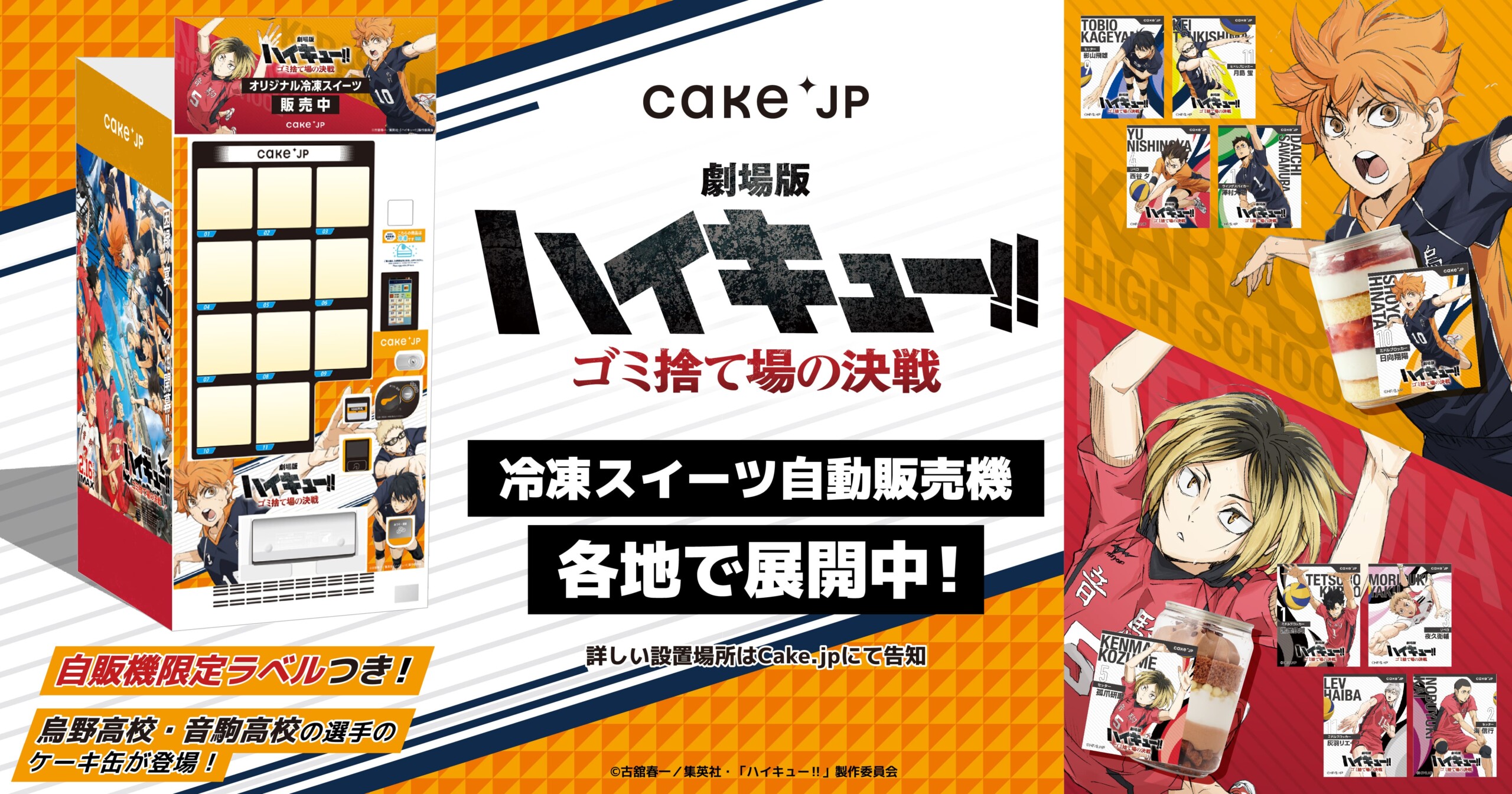 為慶祝日本電影版《排球少年!!垃圾場的決戰》的上映,近日在日本境內特別與「Cake.jp」原創冷凍蛋糕罐合作,推出了專為烏野高中和音駒高中球員設計的自動販售機限定標籤封口的冷凍原創蛋糕罐,共有10種類,於2月16日起在Marui Modi的7家分店陸續上市。所有商品均為此自動販賣機的獨家商品。
