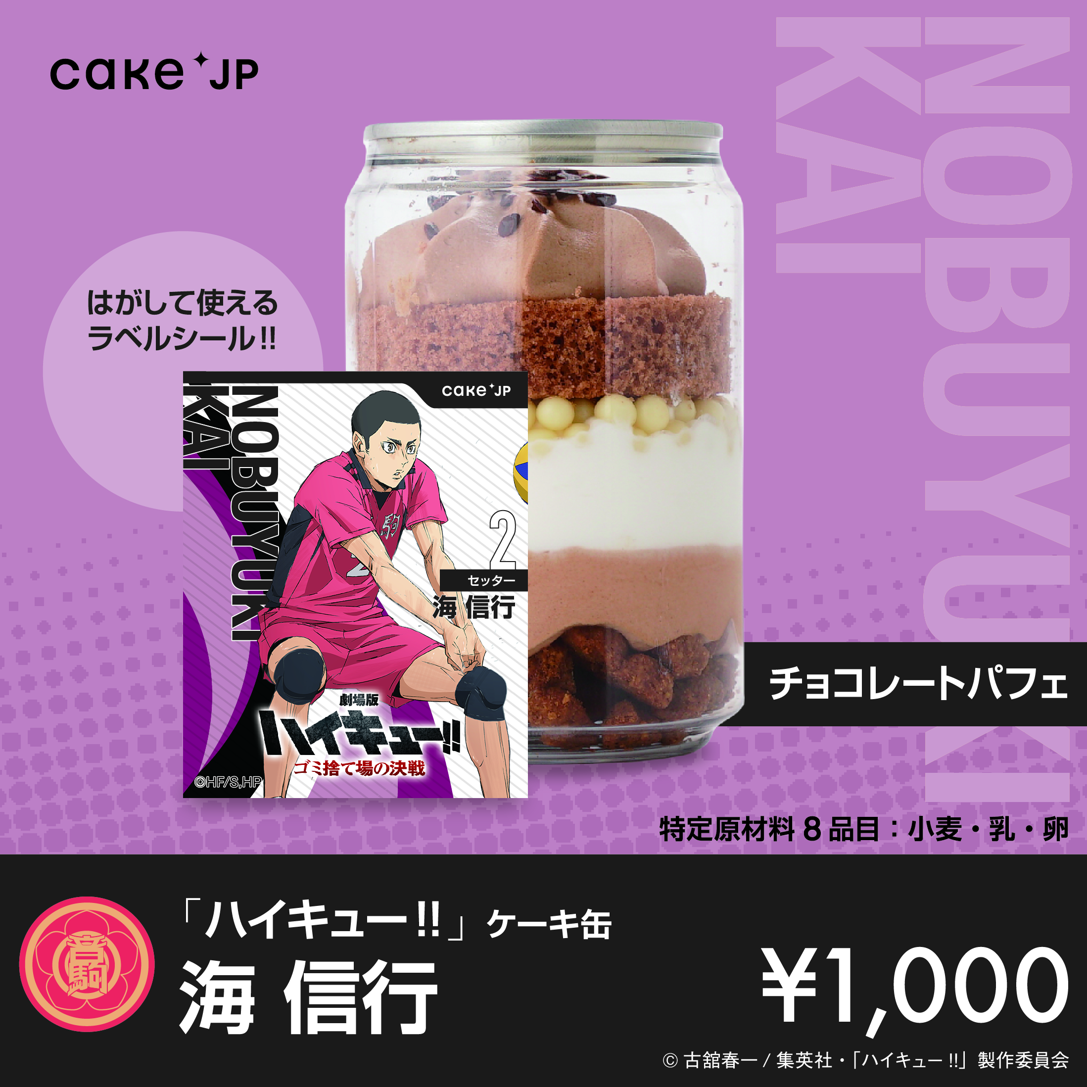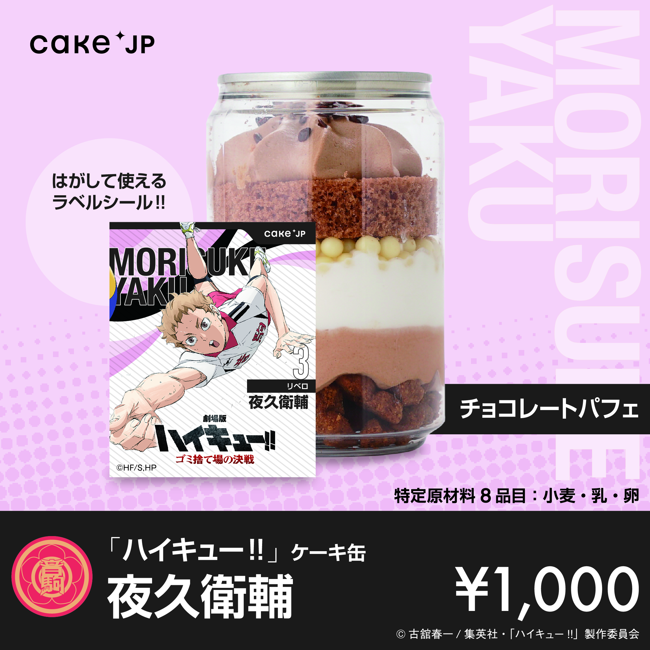 如果你是《排球少年!!》的粉絲,最近有到日本玩的朋友,別錯過!藉著享用蛋糕來一同慶祝《排球少年!!垃圾場的決戰》的上映吧!冷凍原創蛋糕罐有兩種口味(草莓蛋糕、巧克力芭菲聖代)。在享用完蛋糕後,可以清洗罐子後當小物盒使用,並可撕去標籤封口並保存再利用。