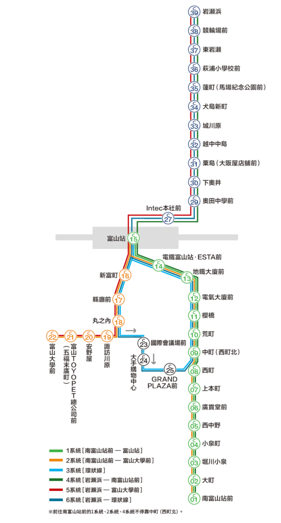 富山市電路線圖 富山市電路線圖/圖片來源:https://www.chitetsu.co.jp/english/cn2/trams.php