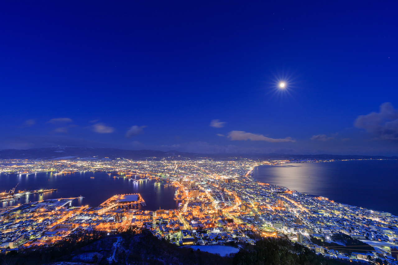 提到北海道的夜景時,想必腦海一定會冒出的就是「函館山」的百萬夜景吧!這個榮獲《米其林綠色指南》三星好評的浪漫之地,不僅夜景璀璨動人,白天的風景也很壯觀。特別在冬天下雪的時節,當您登上函館山觀景台,從山頂即可飽覽360度無死角的絕美景色,還能享受雪景與夜景的完美融合,甚至還有機會欣賞花火大會,更增添神秘與魔幻的氣氛。