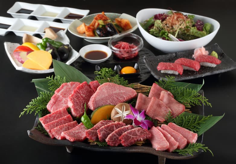 餐廳引以為傲的料理包括招牌菜「焼きすきサーロイン」,肉質多汁,加上獨特的燒烤方式,搭配像是吃壽喜燒一樣,裹著月見醬汁(月見だれ)享用,讓你一口接一口停不下來。更不要錯過「炙燒壽司(炙り寿司)」,入口即化的和牛,極致的鮮美口感絕對是最高品質的享受。