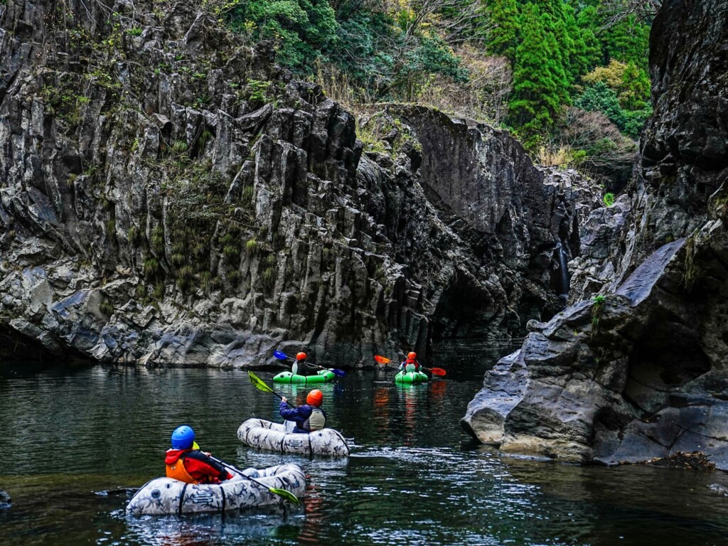 高千穗是由五ヶ瀬川深深侵蝕而成的地形,形成於阿蘇火山的噴發,雄偉岸壁展現出壯麗的景色。自古以來,人們將高千穗的自然視為「神的恩賜」,並培育出獨特的傳統文化,如祈求五穀豐收的神樂。在高千穗,人們迄今仍然保留著依靠這片水域從事農業並保護自然的生活方式。在這個以「神的恩賜」為主題的Packraft活動中,您將在當地活動指導的帶領下,前往追尋幻想瀑布。這是一個能夠感受到大自然偉大之處以及人與自然密切關係的計畫。