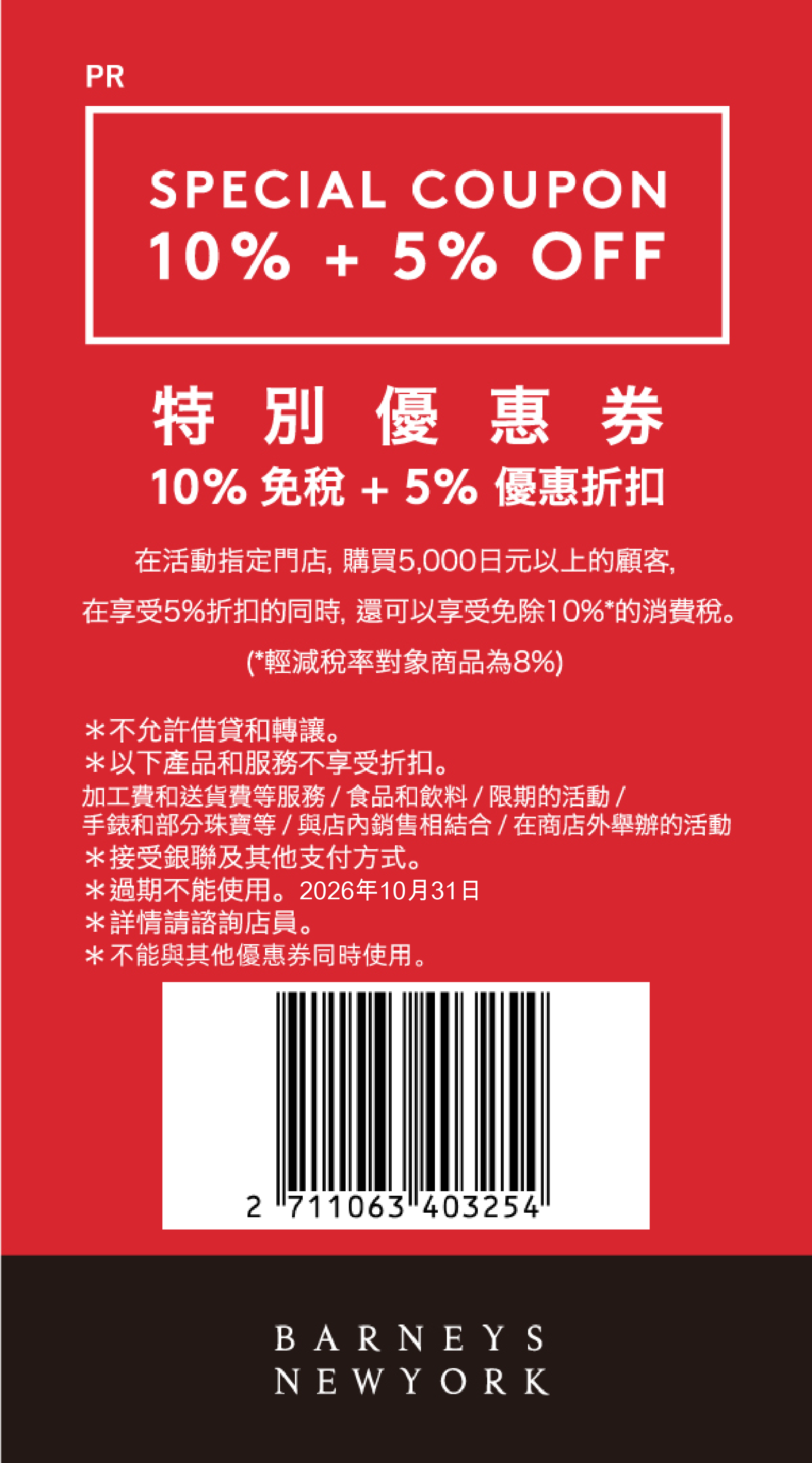 ・在指定店家消費滿5,000日圓以上,可獲得5%的折扣和10%*的免稅