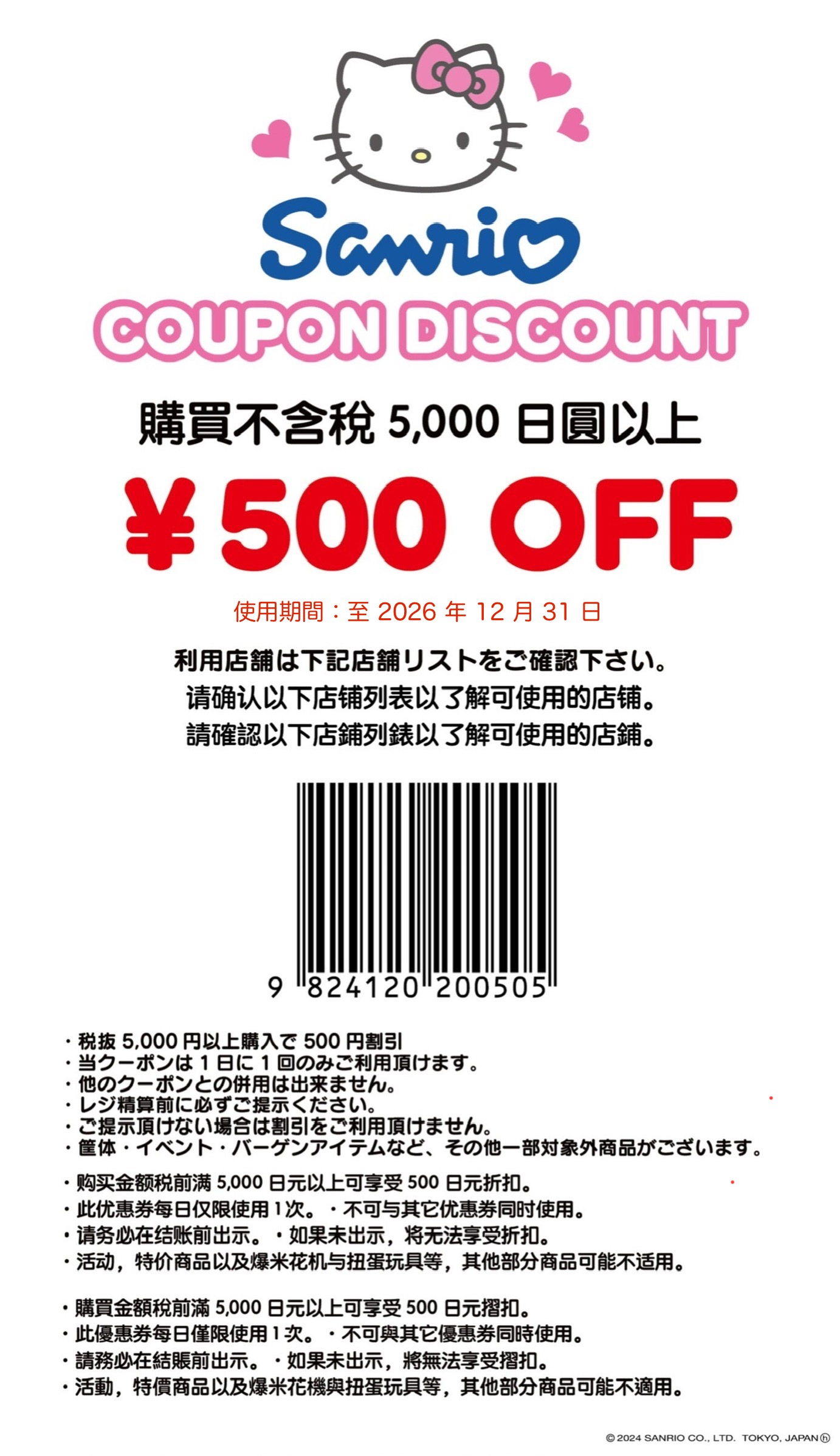 | 特典內容 | 滿額 5,000 日圓(未稅)以上購買可享 500 日圓折扣 |