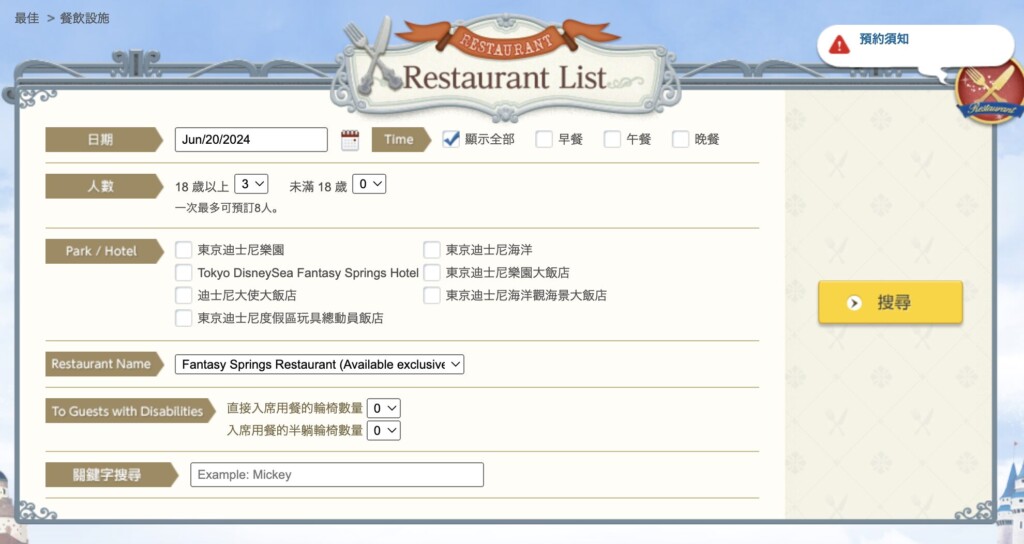 如何提前預約東京迪士尼海洋夢幻泉鄉大飯店餐廳