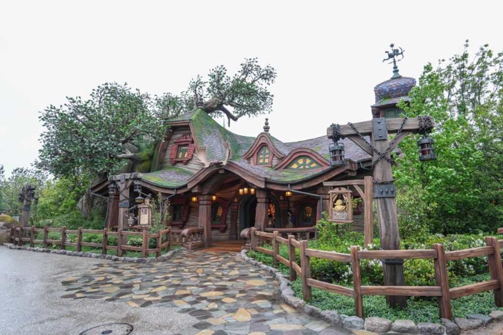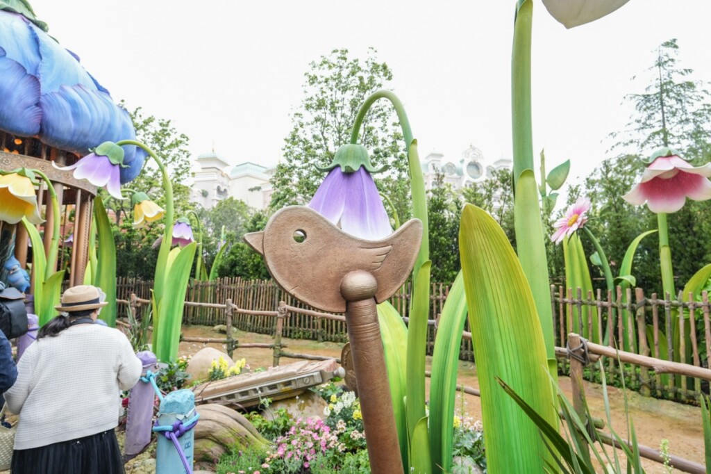 如果從飯店方向的入口進入園區,一進來就能看到各種冰雪奇緣相關的美麗造景,庭園內藏有各種人氣迪士尼人物的造景石雕,大家在園區內可以找找看。入口處右方一進來則是商店,詳細的商店介紹將會在下方段落分享。