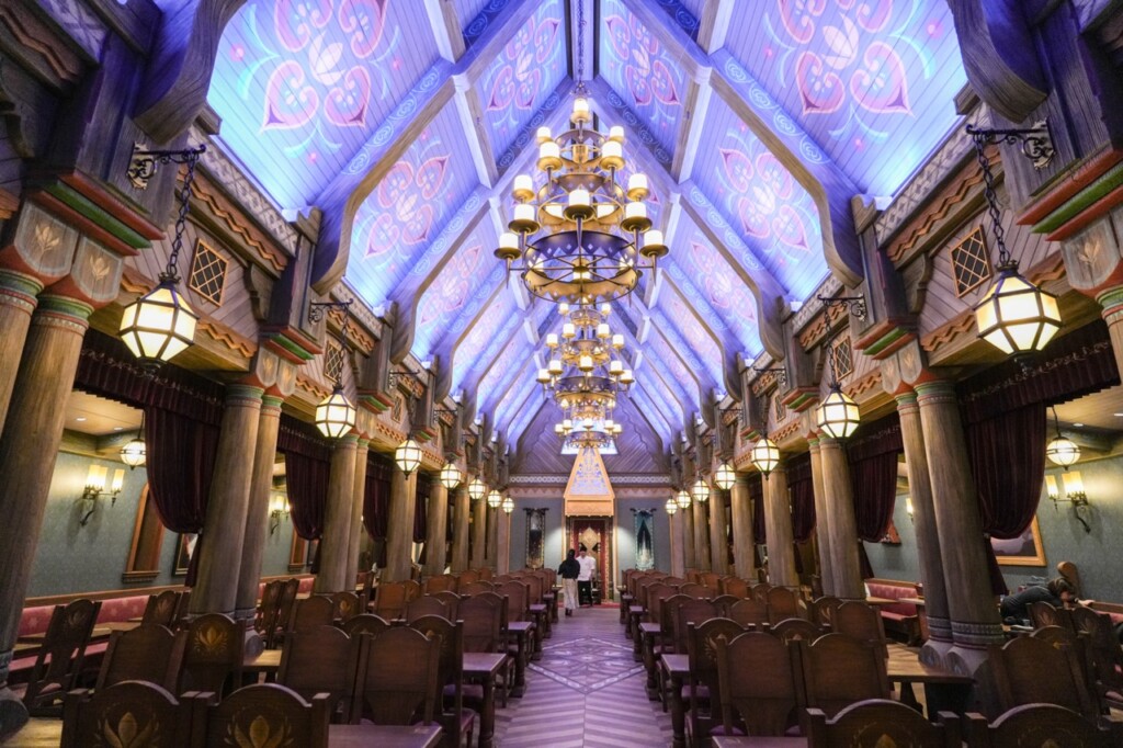 「艾倫戴爾皇家宴會廳 Royal Banquet of Arendelle」室內區域的艾莎加冕大廳相當華麗,坐在這邊能夠在享受美食的同時,感受到如同置身於電影中的皇家奢華。