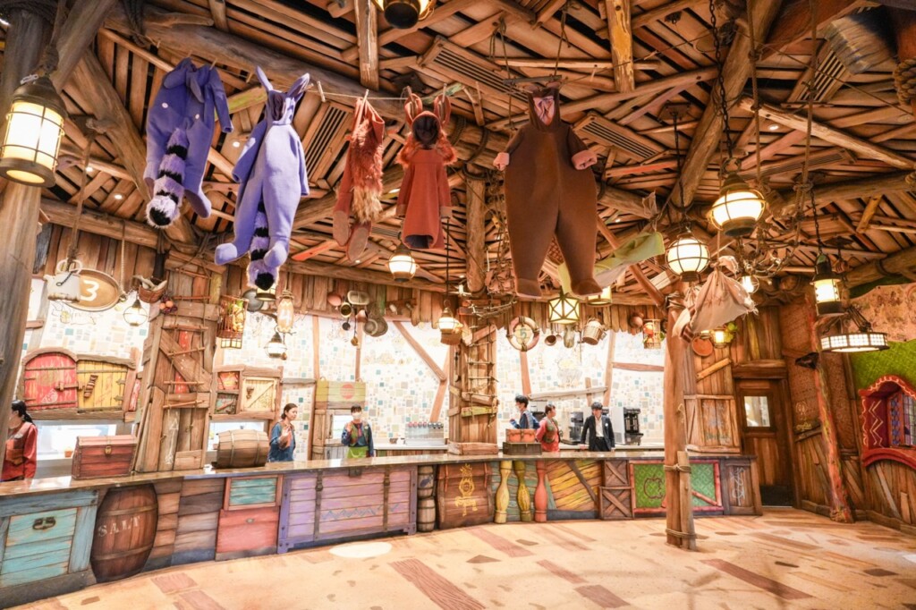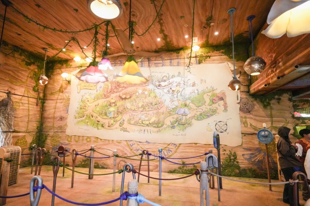 餐廳內部的裝飾反映走失的男孩們的生活,從睡衣到吊床等細節,都巧妙地將遊客帶入故事世界,打造親切神秘的秘密基地感。這種獨特的設計,提升遊客的沉浸感,讓遊客覺得自己是彼得潘冒險故事的一部分。