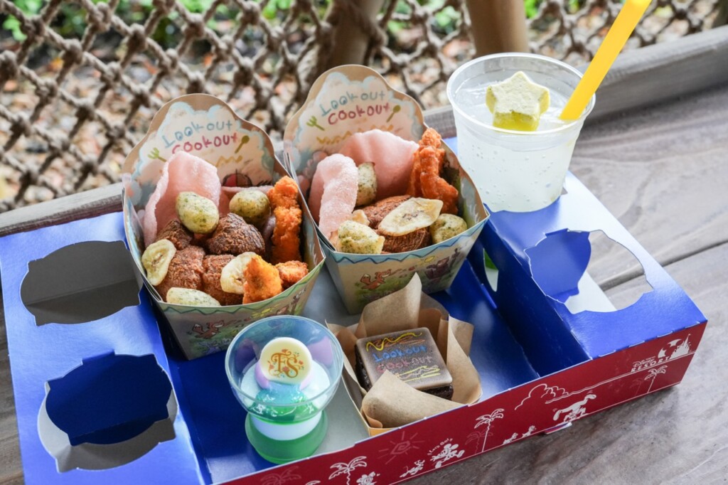 「瞭望台野餐屋 Lookout Cookout」不僅是一家大型餐廳,設有約兩百個座位。更是充滿冒險故事的用餐地點。位於夢幻島上,由沖上岸的船隻殘骸和漂流物搭建而成。這個背景設定,為餐廳創造探險和冒險的氛圍,吸引著喜愛彼得潘故事的家庭和年輕遊客。