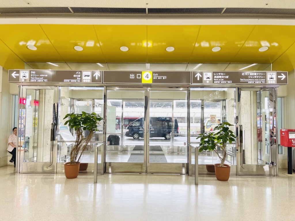 另外,比較常見的情況是需要搭乘接駁巴士到達各家租車公司,辦理租車手續並開始使用車輛。從國內線 1 樓大廳的 4 號出口走出去,就可以看到各家租車公司提供的接駁巴士(如下圖所示),搭上巴士之後,就可以前往租車公司囉!