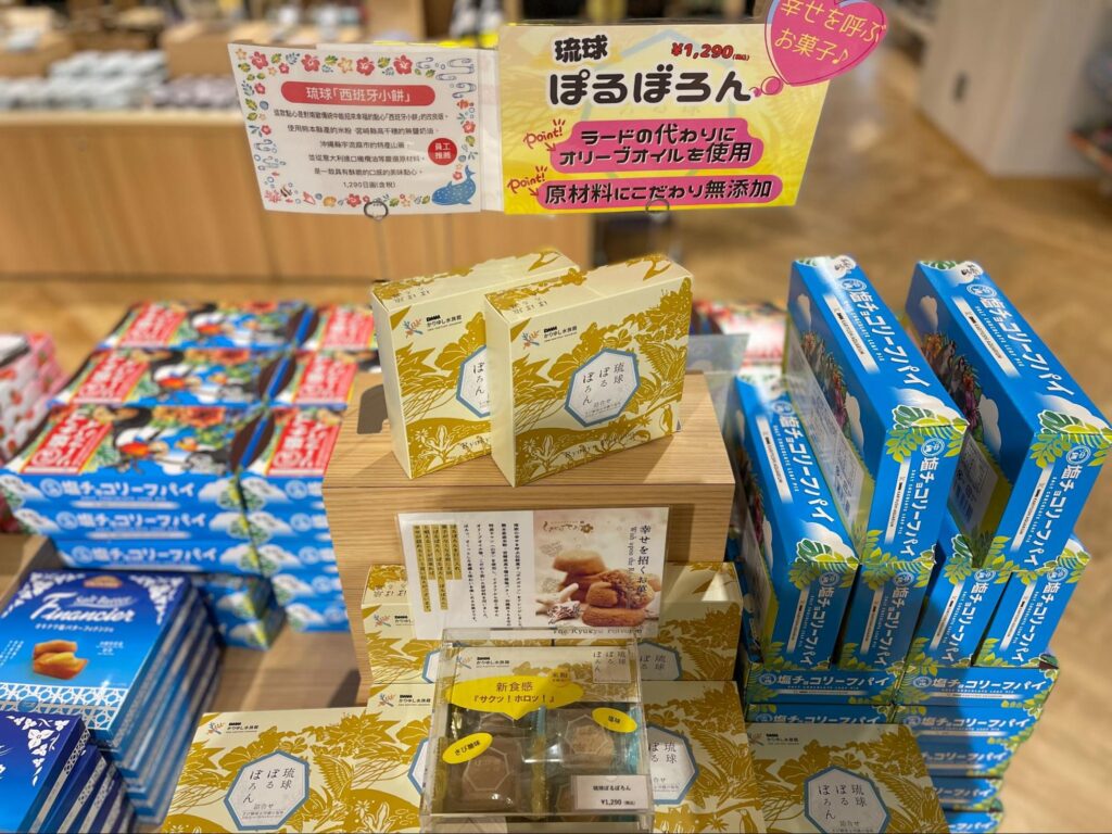 商品種類繁多,從沖繩的經典土產到別具創意的限定商品,可說是應有盡有。許多商品還是以沖繩的當地特產為原料,無論是來自沖繩的紅芋、紫薯、黑糖、海藻,還是獨特的沖繩海鹽,甚至是沖繩獨特的泡盛酒等,都被巧妙地融入各種零食和飲品中,呈現出最具地方特色的風味。
