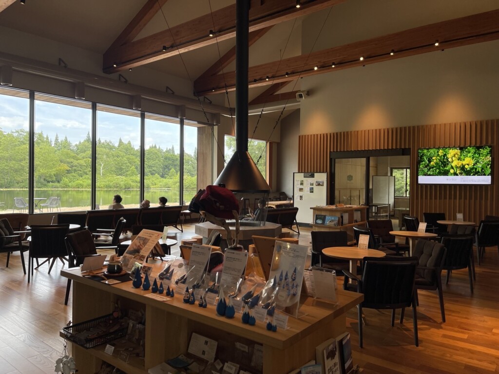 遊客中心擁有一面超大的窗戶,得以在舒適室內享受「いもり池」的壯麗風光。坐在窗邊,品味濃醇的咖啡,或是享用美味冰淇淋,欣賞窗外的絕美景色,真的是無與倫比的享受。