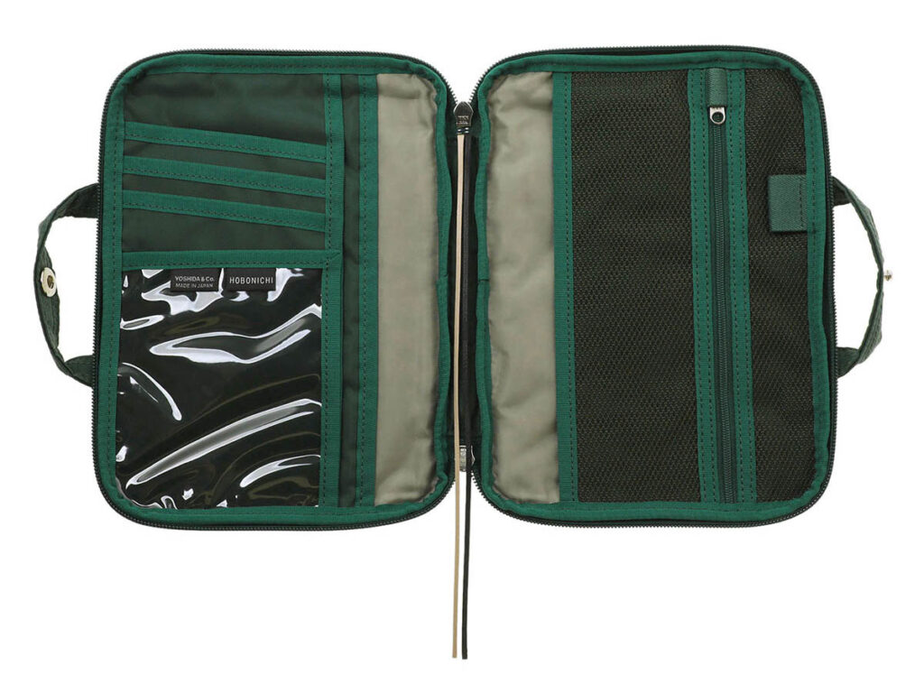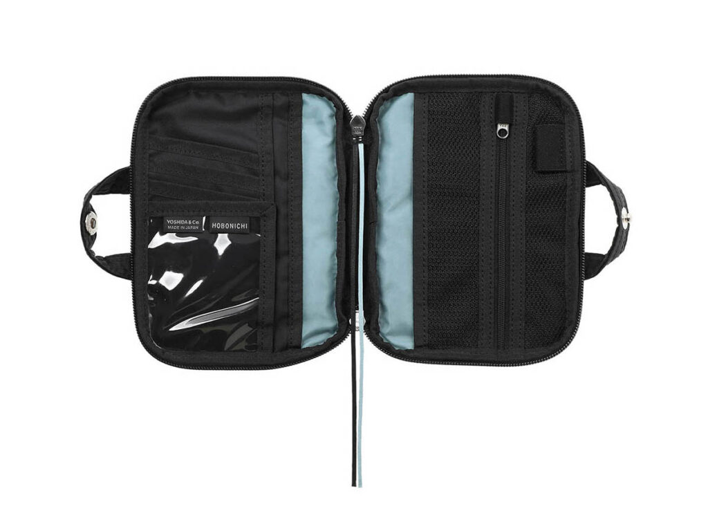 拉鍊打開後,左側設有可放折疊紙鈔和卡片的口袋,以及用於存放零錢的拉鍊口袋。右側配有一個小型方格筆記本,其封面與錢包顏色相同,內頁則使用與「HOBONICHI手帳」相同的3.7mm方格,方便使用者可以隨時記下靈感或備註。錢包還配有一個登山扣環,方便掛在其他的包包上。錢包尺寸為110×80×20mm(寬×高×厚),售價為13,200日圓。
