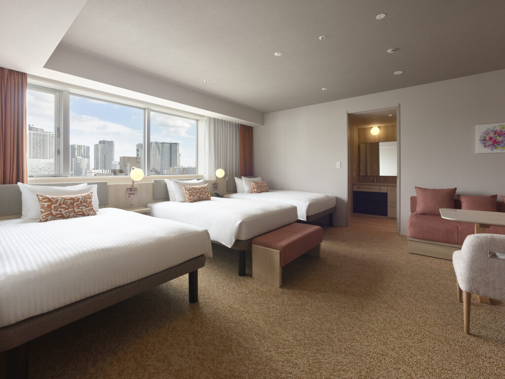 飯店2樓設有藝術品環繞的休憩空間,有免費的Nespresso咖啡機可使用;9樓有健身房;且14樓有米其林指南推薦的餐廳進駐,提供多樣化的住宿體驗。該飯店提供八種不同的客房類型,包括豪華三人房及無障礙三人房,最多可容納四人入住,並配備IH爐和廚具,特別適合團體旅客及喜歡自行料理的旅人。住客可隨時前往築地市場購買新鮮食材,回到房間自製料理,體驗當地生活。