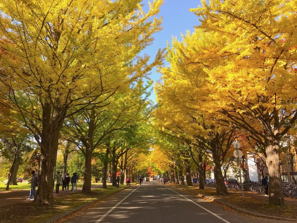 「北海道大學(北海道大学)」不只是一所專業學府,更是一處秋天必訪的絕美景點!漫步在校園內,你會被成排的銀杏樹深深吸引。每到秋季,這些大樹就會換上金黃色的外衣,彷彿為整座校園披上一層金紗。