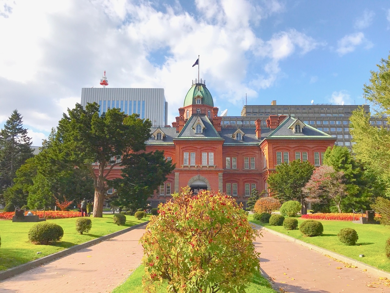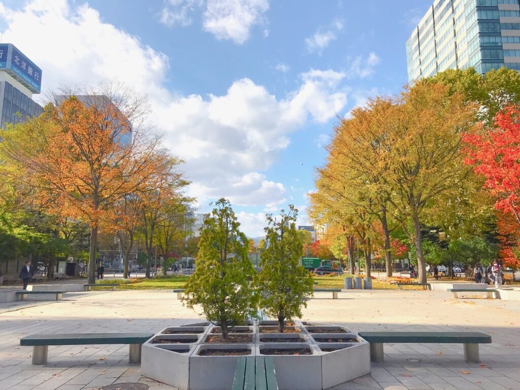 大通公園內有噴水池跟各種花卉,夏天是「札幌大通啤酒花園」的舉辦場所,冬天更是舉辦「札幌雪祭」的主要會場之一!秋天來這裡,既可以欣賞楓葉,又可以想像著冬天的雪祭盛況,真的是一舉數得。