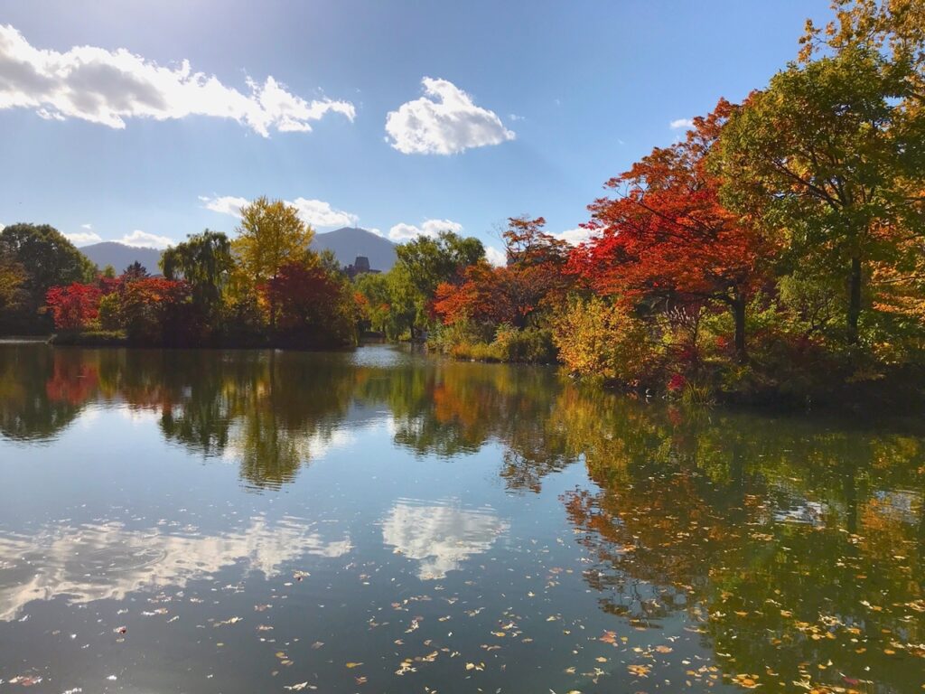 「中島公園」就像是札幌市中心的一座小型森林,秋天來這裡絕對驚艷!從地鐵站出來,映入眼簾的就是滿開的銀杏樹!