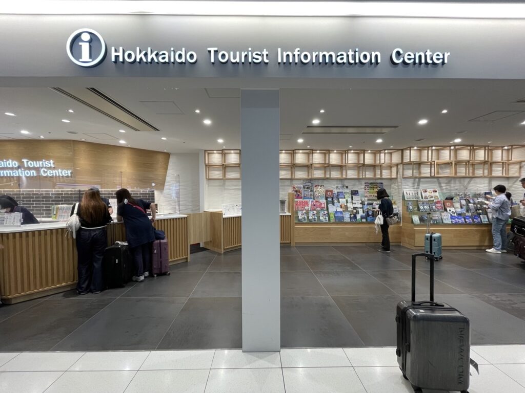 搭乘飛機抵達新千歲機場「國際線航廈」後,一出來就可以看到「北海道旅遊中心」。這裡有熱心親切的服務人員,若你有任何問題,都可以在這裡找到答案。此外,這裡還提供豐富的旅遊資訊,可以自由取用。