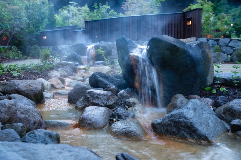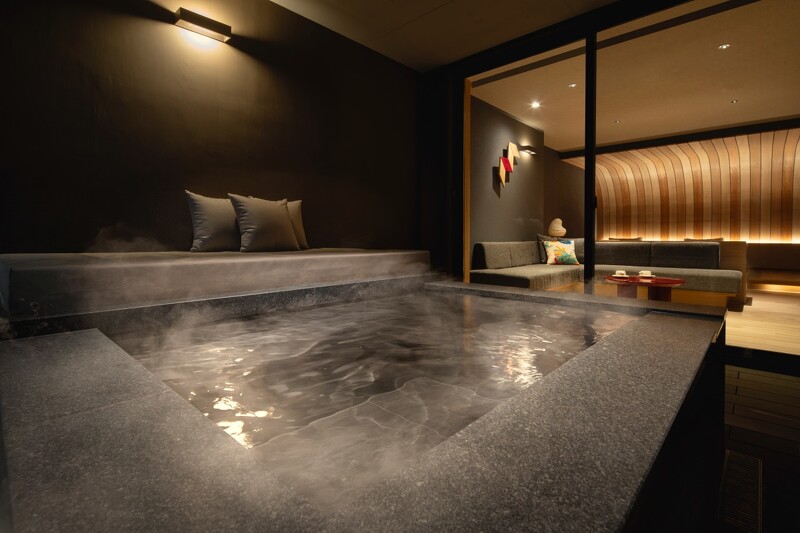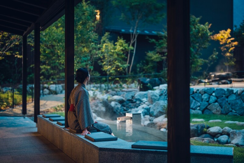 「界 奧飛驒」的大浴場露天溫泉設計靈感來自奧飛驒地區的豪雪地帶,特別是「雪廊」。浴池上方的圓形洞口讓客人欣賞潔白的「雪牆」與藍天,四周圓滑的牆面象徵雪的柔軟曲線。客人可在純淨氛圍中沉浸,享受映照的天空與泉水流淌聲,夜晚星空點點,更添浪漫。室內浴池提供「熱湯」與較溫和的「溫湯」,奧飛驒的中性泉質富含偏矽酸與偏硼酸,對肌膚溫和。這裡的溫泉被視為療癒之湯,特別適合在外湯巡禮後進行身心恢復,讓旅客享受多樣化的溫泉體驗。