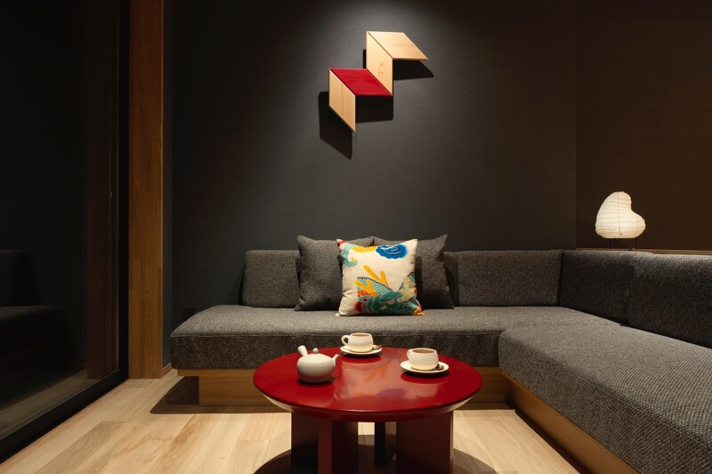 在「界 奧飛驒」的每間客房中,都能體驗當地文化。49間特色客房名為「飛驒MOKU之間」,展現天然木材的溫暖質感與飛驒的魅力。雖然外觀低調,但室內以鮮豔的紅色為主調,這種色彩常見於當地高山祭,為房間增添華麗感。客房內融入當地傳統工藝,如飛驒春慶漆用於牆壁裝飾,原創的飛驒染靠墊讓客人近距離感受奢華美感。床頭板採用曲木設計,使用飛驒的廣葉樹,營造溫暖睡眠環境。每間客房配置由當地「飛驒產業」製作的曲木椅,以及800年歷史的山中和紙行燈,營造柔和的光線和溫馨氛圍。超過半數的客房還配備戶外露天浴池,讓客人在房內享受奢華沐浴體驗。