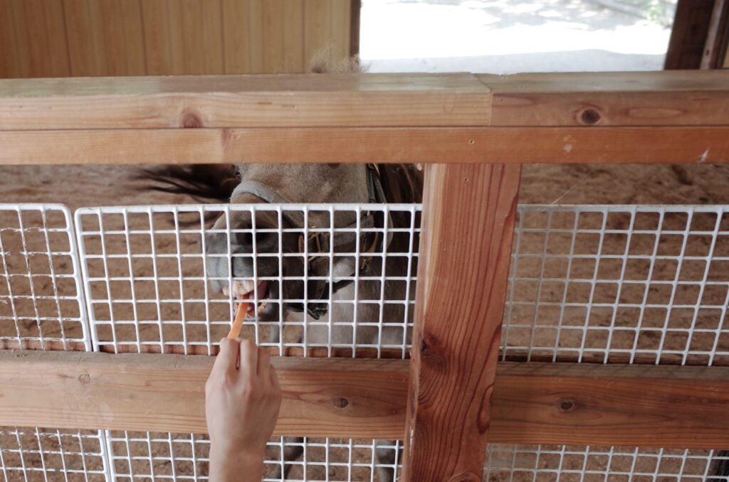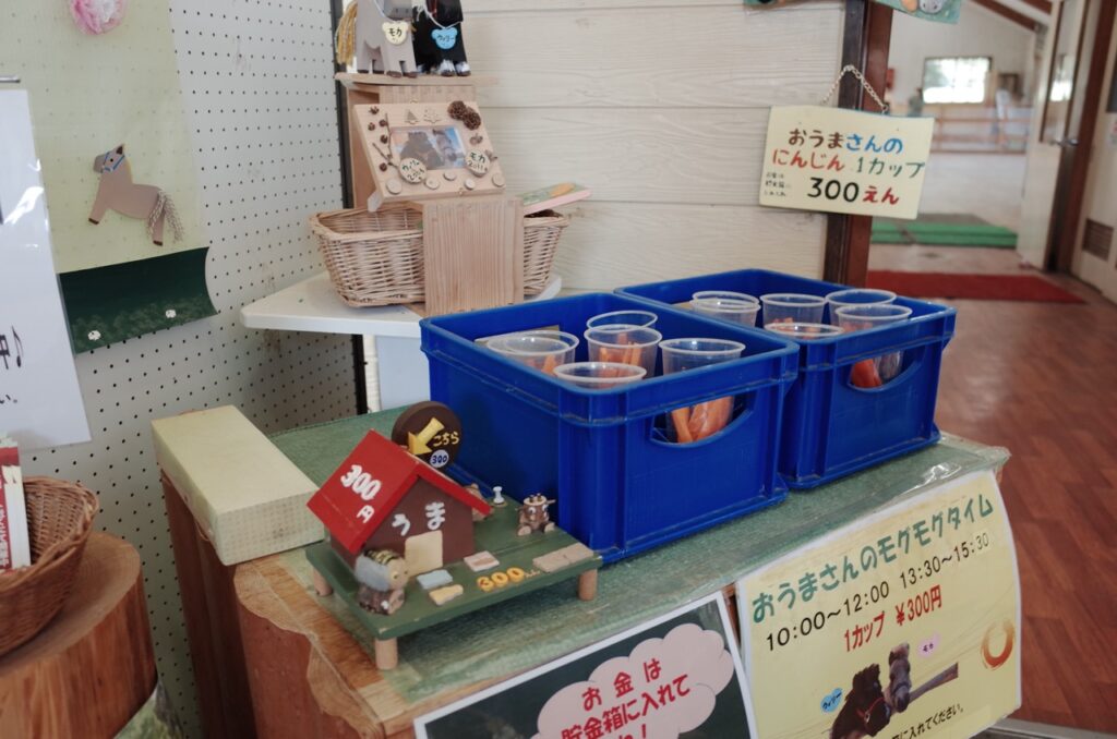 農場會提供胡蘿蔔(每杯300日圓)讓旅客餵食,不過因為數量有限,建議在體驗開始前5分鐘就到牧場廳等待。