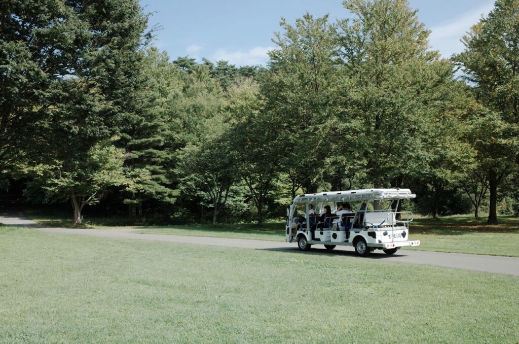 搭乘園區接駁車「哞哞號」,可以毫不費力的欣賞小岩井農場內的迷人風景。運行時間是9:30~11:30,以及13:00~16:30。車資為200日圓。