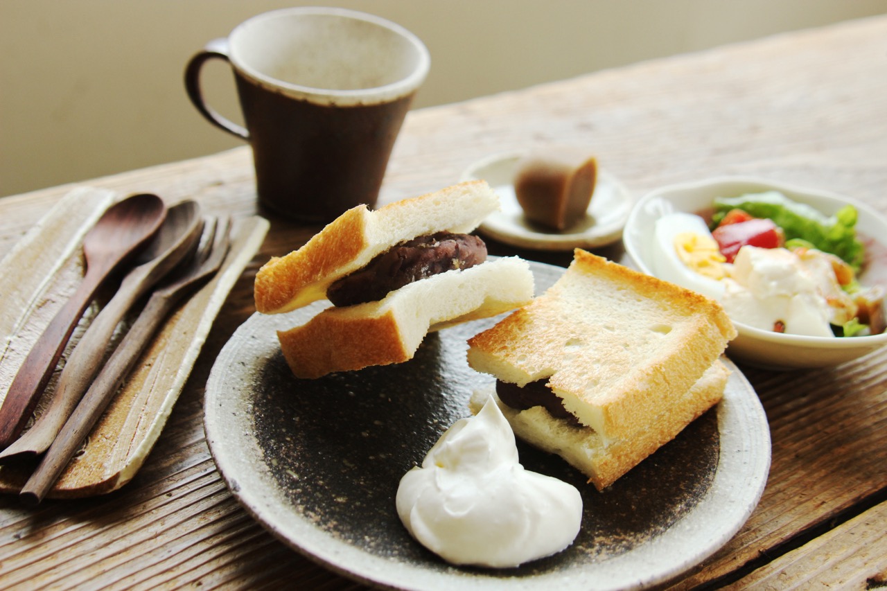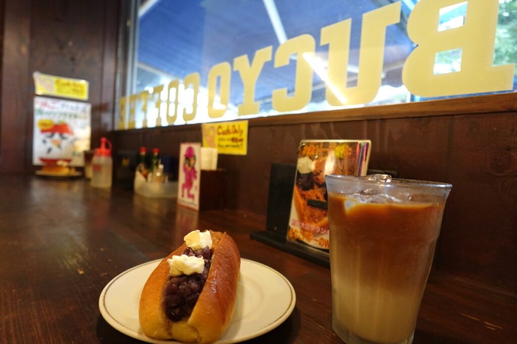 BUCYO COFFE 提供與在地人氣麵包店「パインフィールズマーケット(Pine Fields Market)」聯名的麵包,製作而成「小倉紅豆黃豆粉大豆奶油沙拉堡(こっぺぱん)」。飲料的選擇也相當多樣,只要是飲料菜單內有打「★」的,都可以選擇搭配。