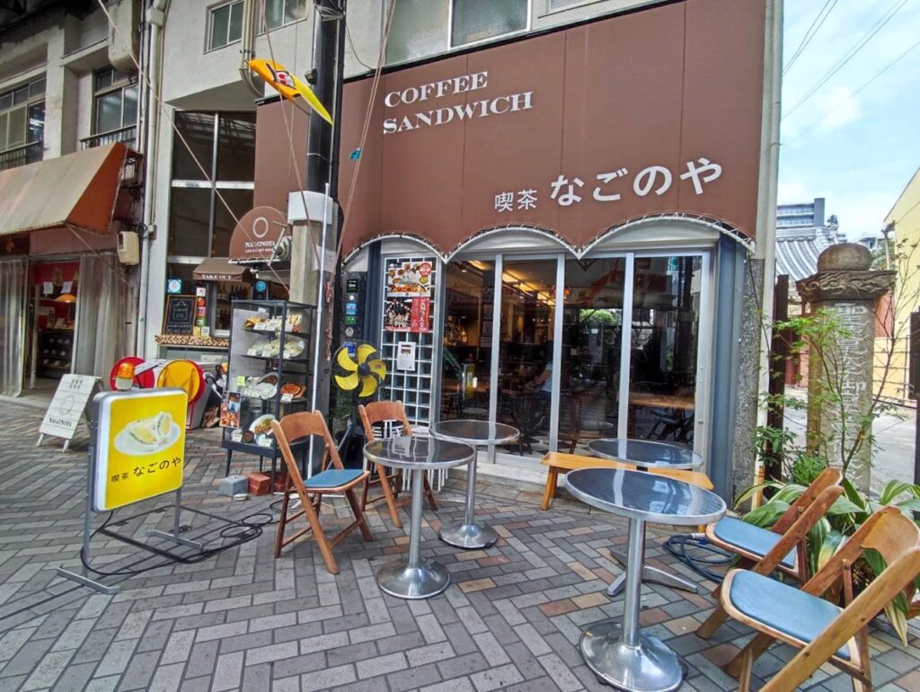 結合喫茶、食堂、民宿等多種元素的「なごのや」,是從西元 1932 年起就一直在「圓頓寺商店街(円頓寺商店街)」營業的喫茶老舖「西アサヒ」,於 2015 年重新改裝開幕。
