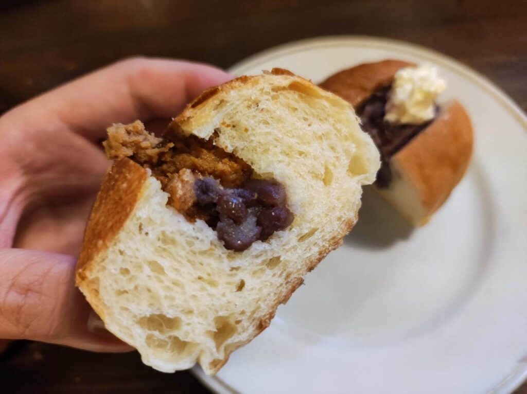 看似樸實的麵包,有著複雜多重的華麗味道。外酥內軟的麵包,搭配大小顆粒適中的「黃豆粉大豆奶油醬(きなこバター)」,以及口感濃密卻不甜膩的紅豆餡,再來杯味道清香的豆漿拿鐵,原來這就是專屬於名古屋早餐文化的幸福滋味!