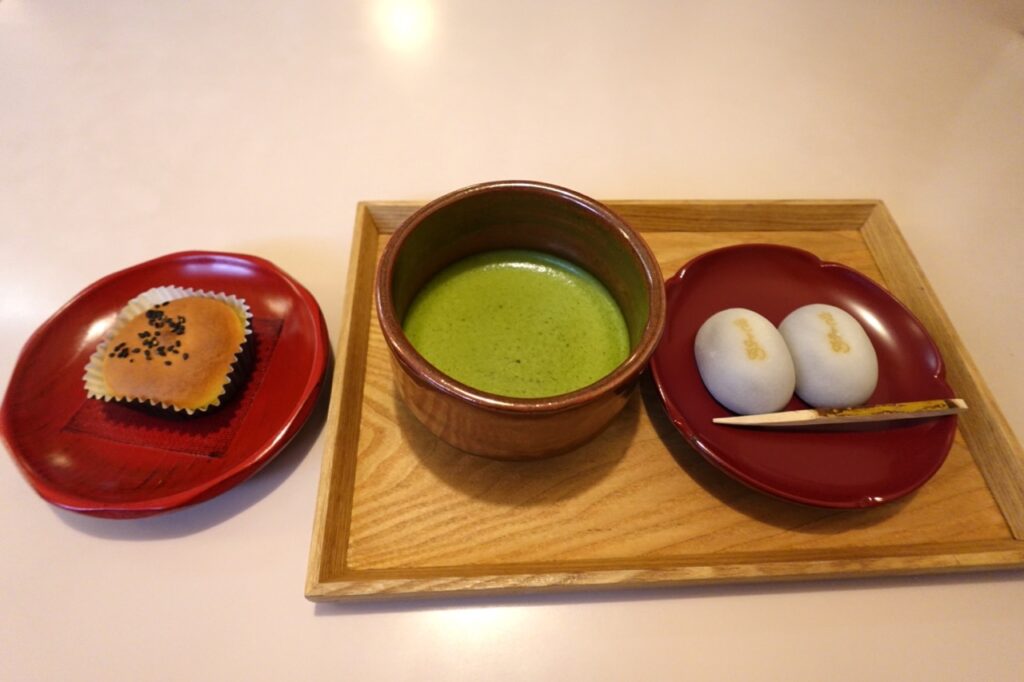 這次的「前往名古屋的喫茶店吧!」活動,喜與女茶寮提供豐盛的經典套餐「抹茶+紅豆麻糬+迷你小紅豆麵包(抹茶+きよめ餅+きよめぱん)」。「きよめぱん」可以選擇外帶,推薦大家可以將這個特別的紅豆小麵包,帶回家與親朋好友一起分享。