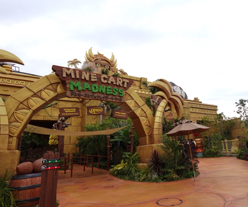 而萬眾矚目的遊樂設施「咚奇剛的瘋狂礦車™(ドンキーコングのクレイジー・トロッコ™)」,可以說是比以往更加創新與刺激的遊玩設計。