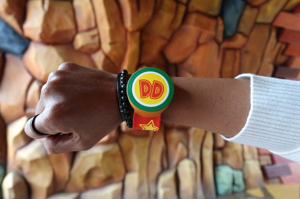 來到超級任天堂世界,人手都必有一支的能量手環,更因應咚奇剛國度的開幕,新推出代表咚奇剛和咚咚剛的「DK」、「DD」字樣造型能量手環!