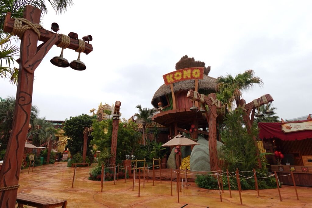 除了有超刺激的創新遊樂設施,還可以買到園區限定的咚奇剛周邊商品,更可以品嚐超有熱帶叢林氛圍的飲品和食物。每個區域都充滿設計巧思,讓來到這裡的朋友們,彷彿置身於遊戲中的神秘叢林中般刺激有趣。