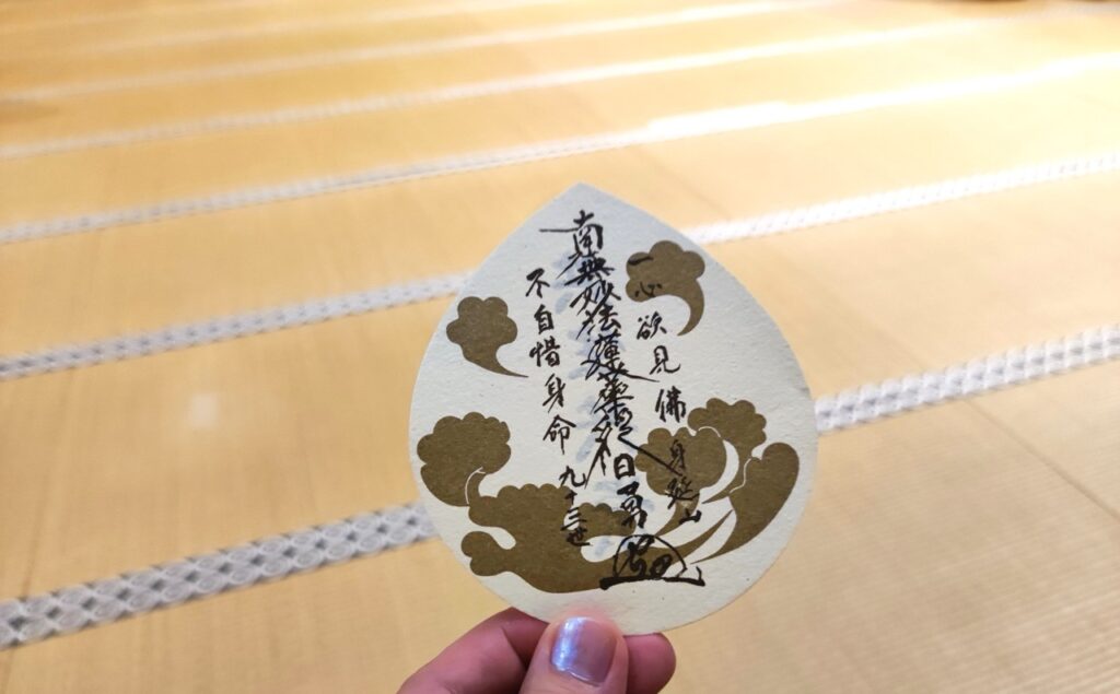 早課快要結束時,可以在現場排隊領取久遠寺僧侶手抄的平安卡喔!
