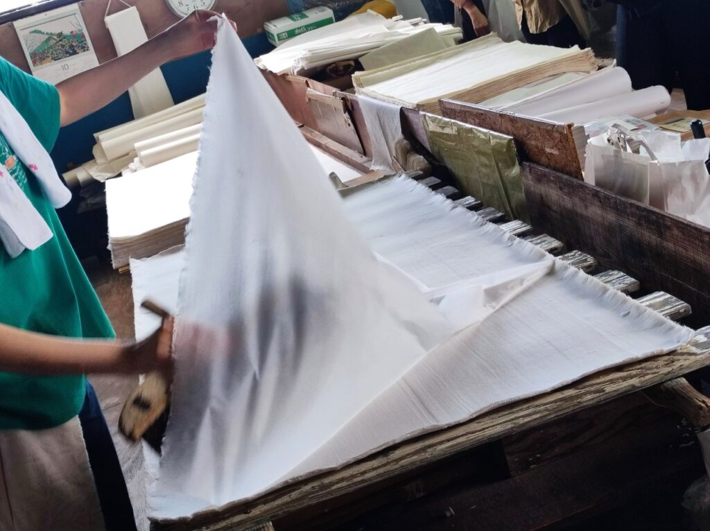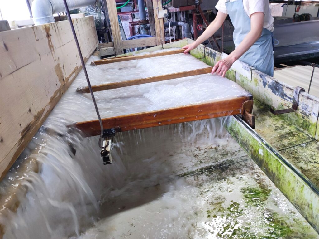 體驗當日來到已經傳承13代的山十製紙工作坊參觀,工作坊內擺放著各式各樣的傳統製紙機械。工作人員熱情地介紹關於西嶋和紙的歷史與特性,還能在體驗從0到1製作和紙的過程。